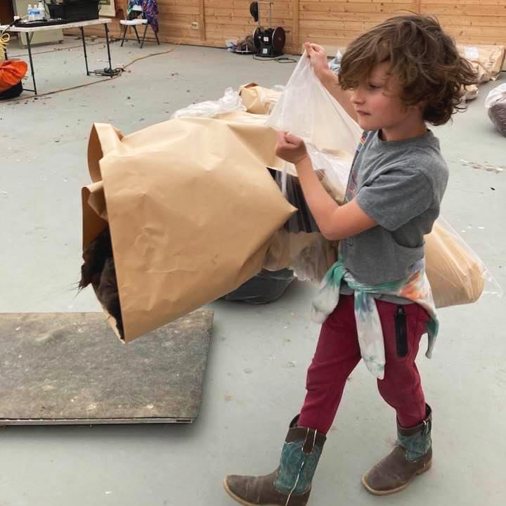 If you enjoy your project from the beginning, we have unfinished fleece in a variety of colors. If you would like a little more refined fiber, we offer roving, and processed yarn in a variety of sizes (e.g. fingering, worsted, or rug yarn).